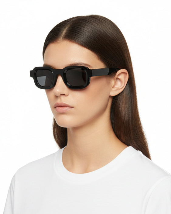 Own your style with the SCRATCHY sunglasses — a bold, sleek frame with a sharp rectangular silhouette. Its beveled acetate structure and retro-futuristic design creates a look of confident individuality, making it a true standout piece.