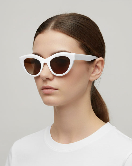 Step into timeless style with the DELICACY sunglasses — a sculptural, 50s-inspired cat-eye with beveled acetate detailing on the front. Infused with vintage charm, this silhouette feels both feminine and undeniably fun.