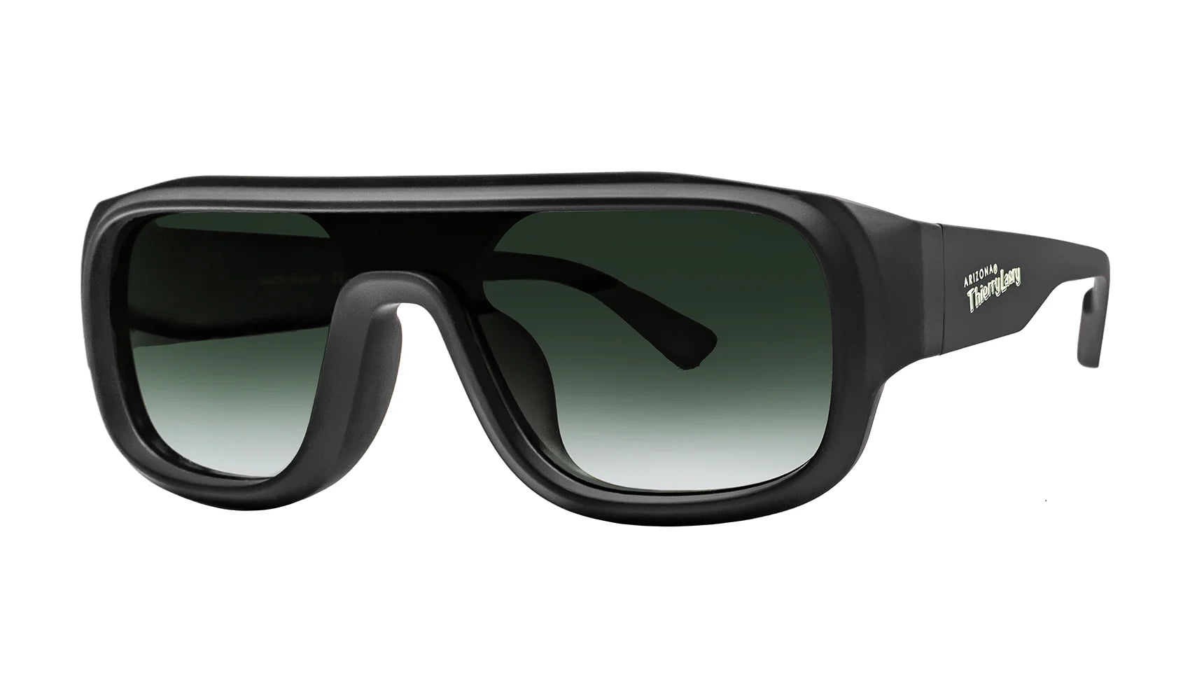 The line features nine matte-finish shield sunglasses in AriZona’s vibrant colors, blending sporty chic with nostalgic flair.