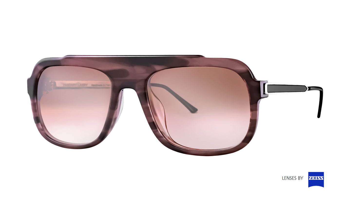 - Burgundy pattern Acetate & Zeiss Gradient Brown Flash Silver Mirror–Coated Lenses with Anti-Reflection, Paired with Silver and Black Metal Lacquer Temples