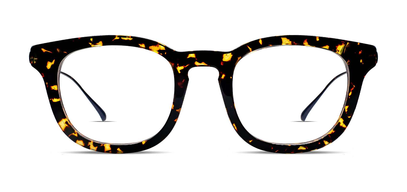 - Tortoiseshell acetate w/ matte black titanium temples