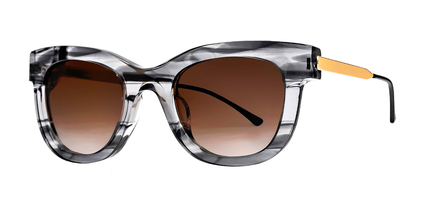 - Translucent gradient grey pattern acetate with gradient brown lenses & gold metal temples