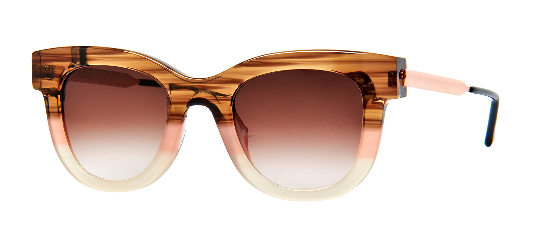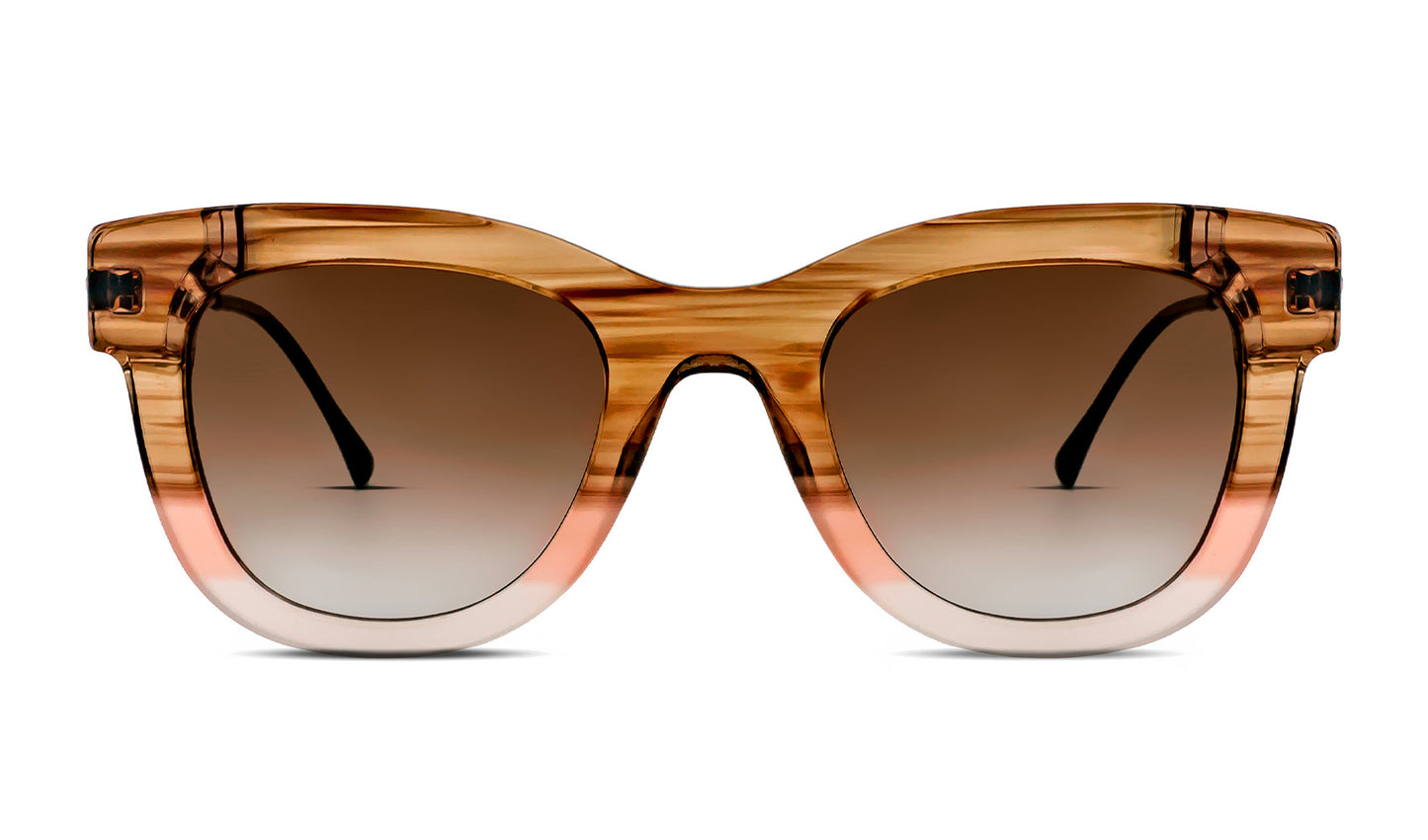 - Brown & pink gradient acetate with rose gold metal temples and brown gradient lenses