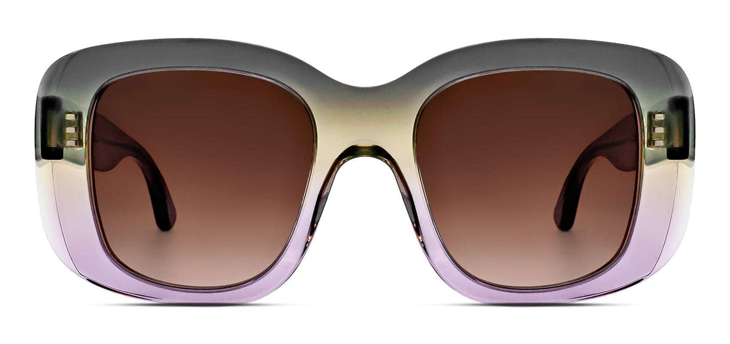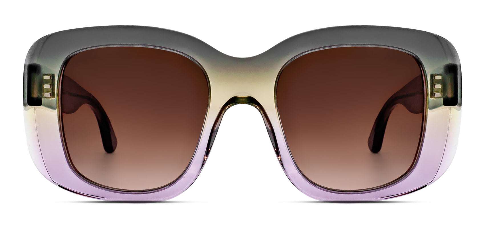 - Translucent gradient grey/yellow/pink acetate w/ gradient brown lenses