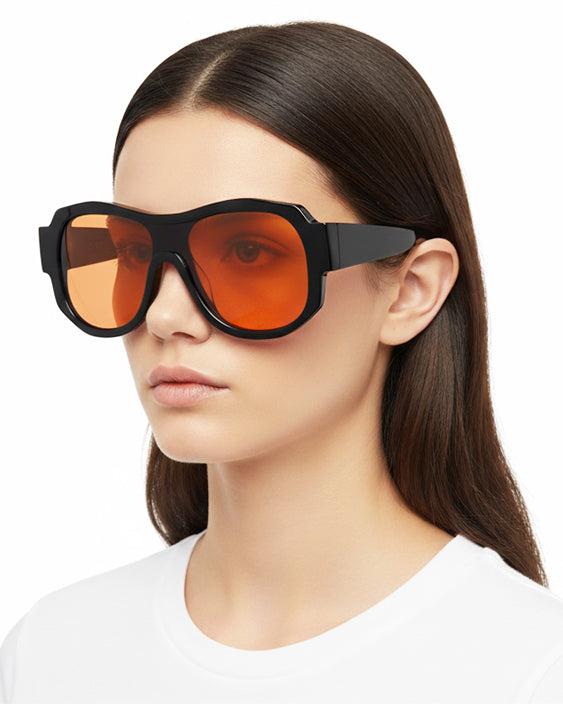 - Solid black w/ orange tinted lenses