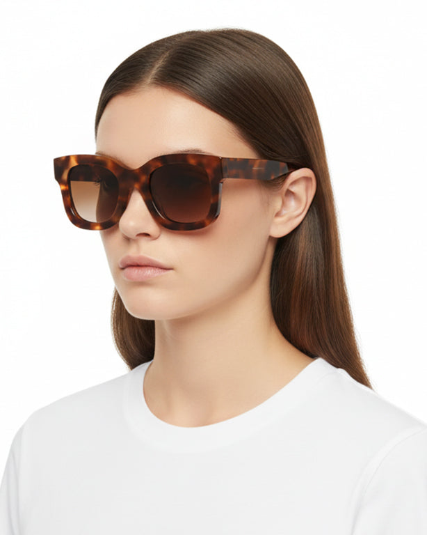 - Classic tortoiseshell acetate w/ gradient brown lenses